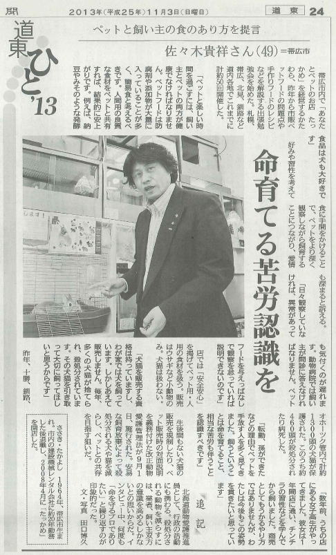 | 2013年11月3日北海道新聞道東版 | |