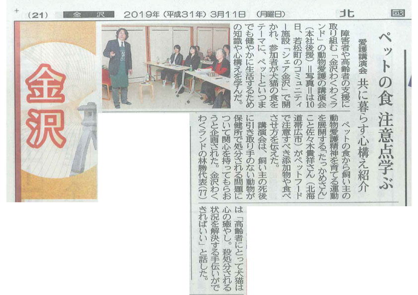 | 2019年3月11日 北國新聞金沢版 | |